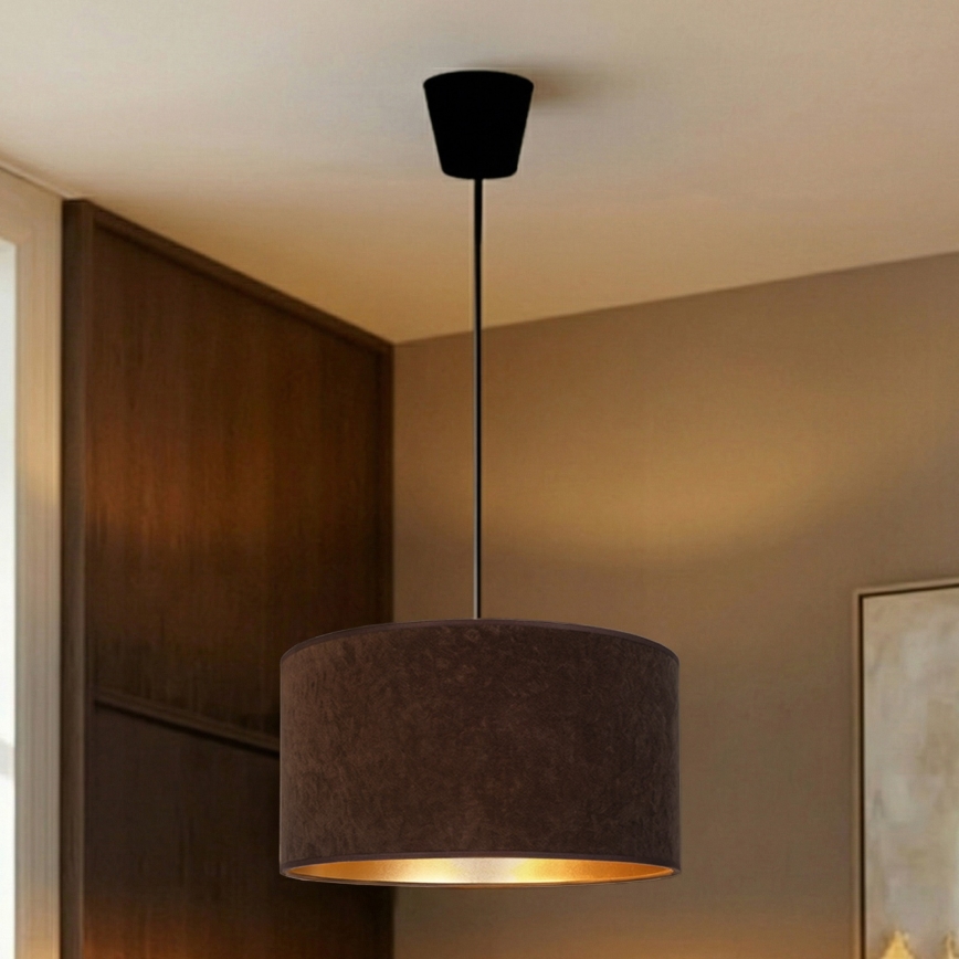 Brilagi - Pendel på ledning VELVET 1xE27/60W/230V Ø 40 cm brun/guld er kendetegnet ved et flot og funktionelt design.  En lyspære med E27-fatning passer til denne lampe. Her kan du købe andre pærer til fordelagtige priser. Du får en interessant tilføjelse til dit hjem.