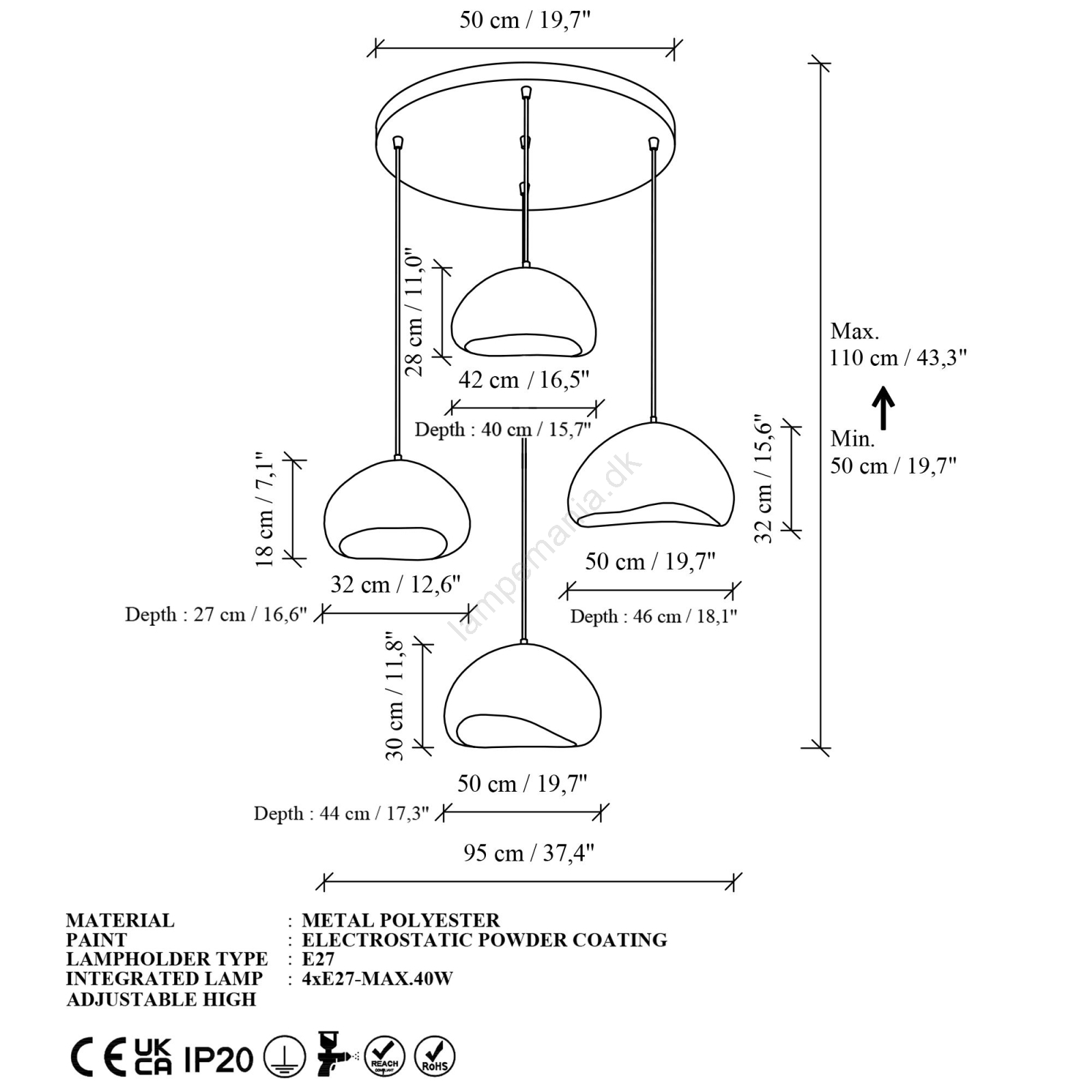 Brilagi - Pendel på wire WABI SABI 4xE27/40W/230V Ø 95 cm hvid