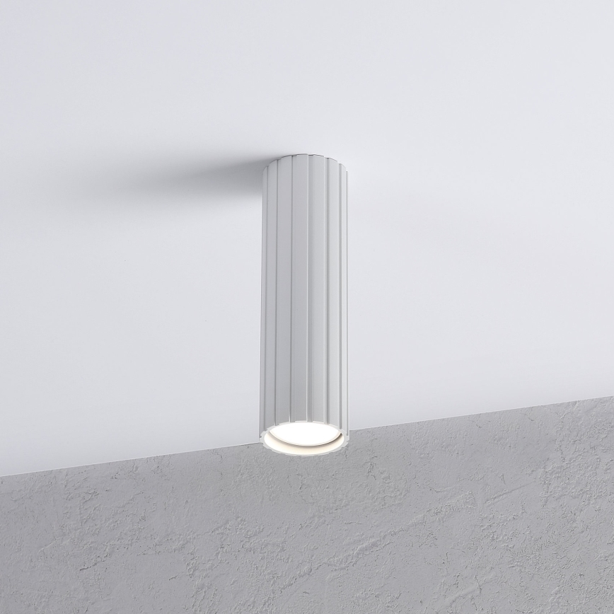• Den rene hvide overflade fremhæver armaturets minimalistiske og tidløse karakter.