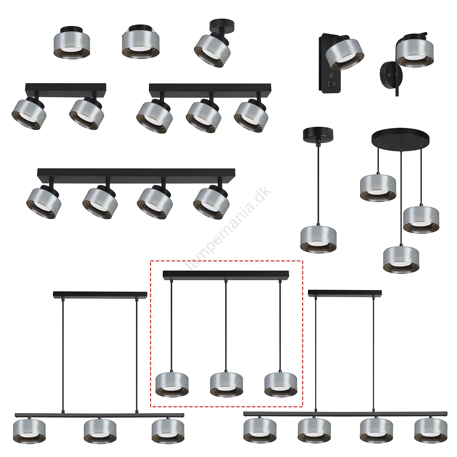 • Brilagi - LED Suspensionslampe med wire AURA LUX 3xGX53/30W/230V sort/røgfarvet