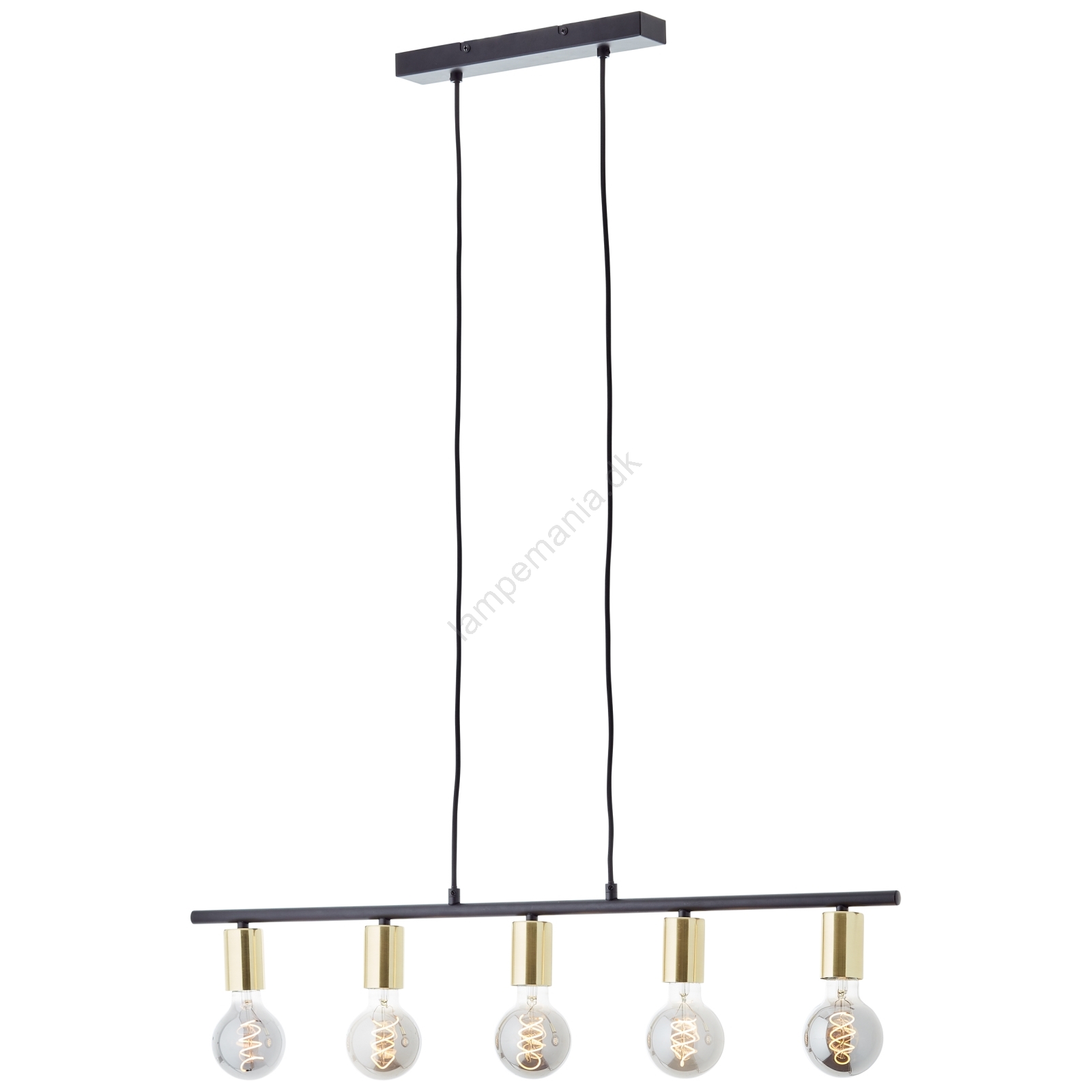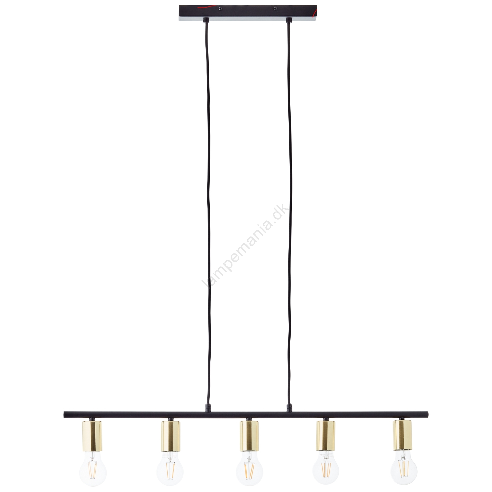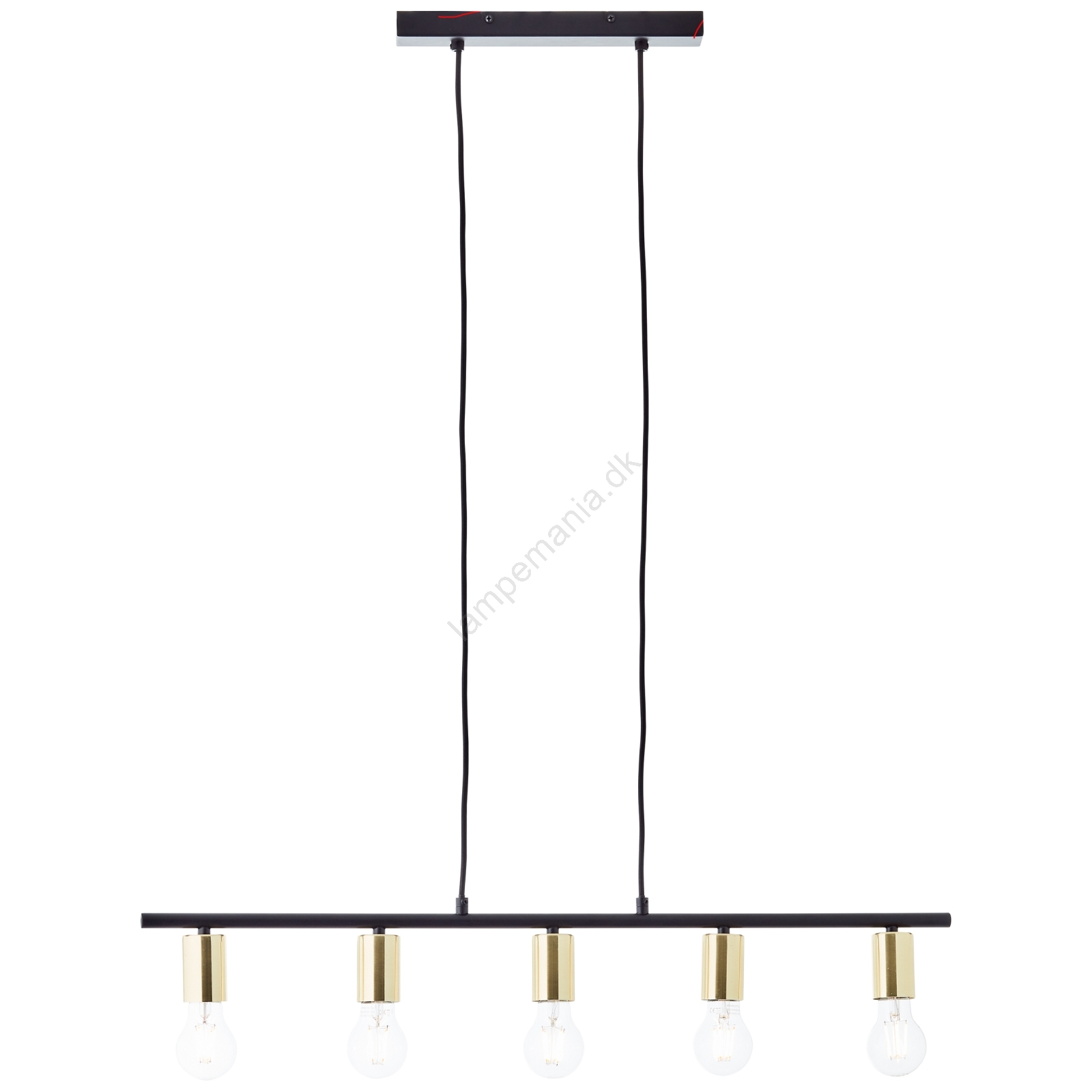 Brilliant - KERRY pendel på kabel 5xE27/40W/230V sort/messing er kendetegnet ved et flot og funktionelt design.  En lyspære med E27-fatning passer til denne lampe. Her kan du købe andre pærer til fordelagtige priser. Du får en interessant tilføjelse til dit hjem.