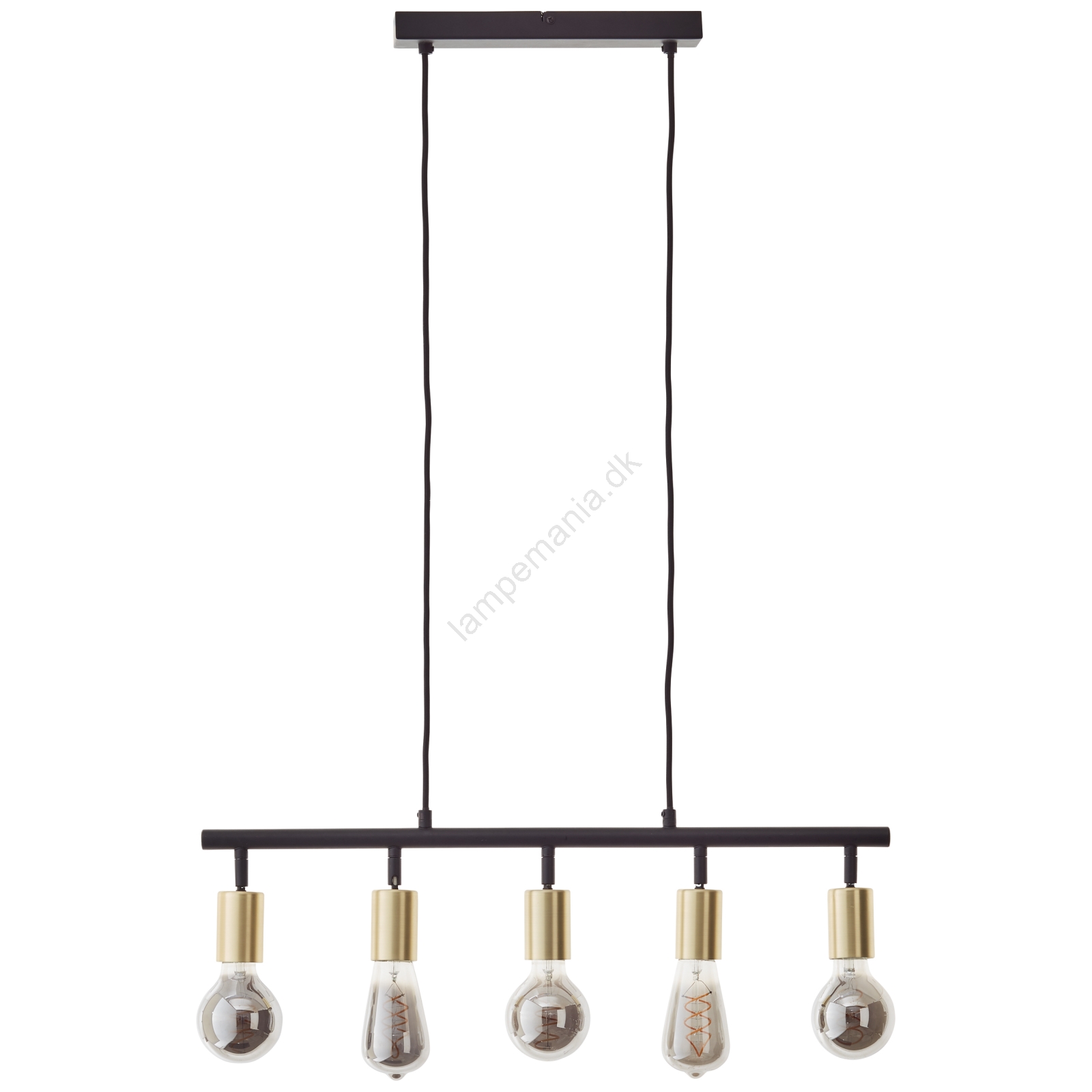 Brilliant - Lysekrone på wire TIFFANY 5xE27/28W/230V sort/messing er kendetegnet ved et flot og funktionelt design.  En lyspære med E27-fatning passer til denne lampe. Her kan du købe andre pærer til fordelagtige priser. Du får en interessant tilføjelse til dit hjem.