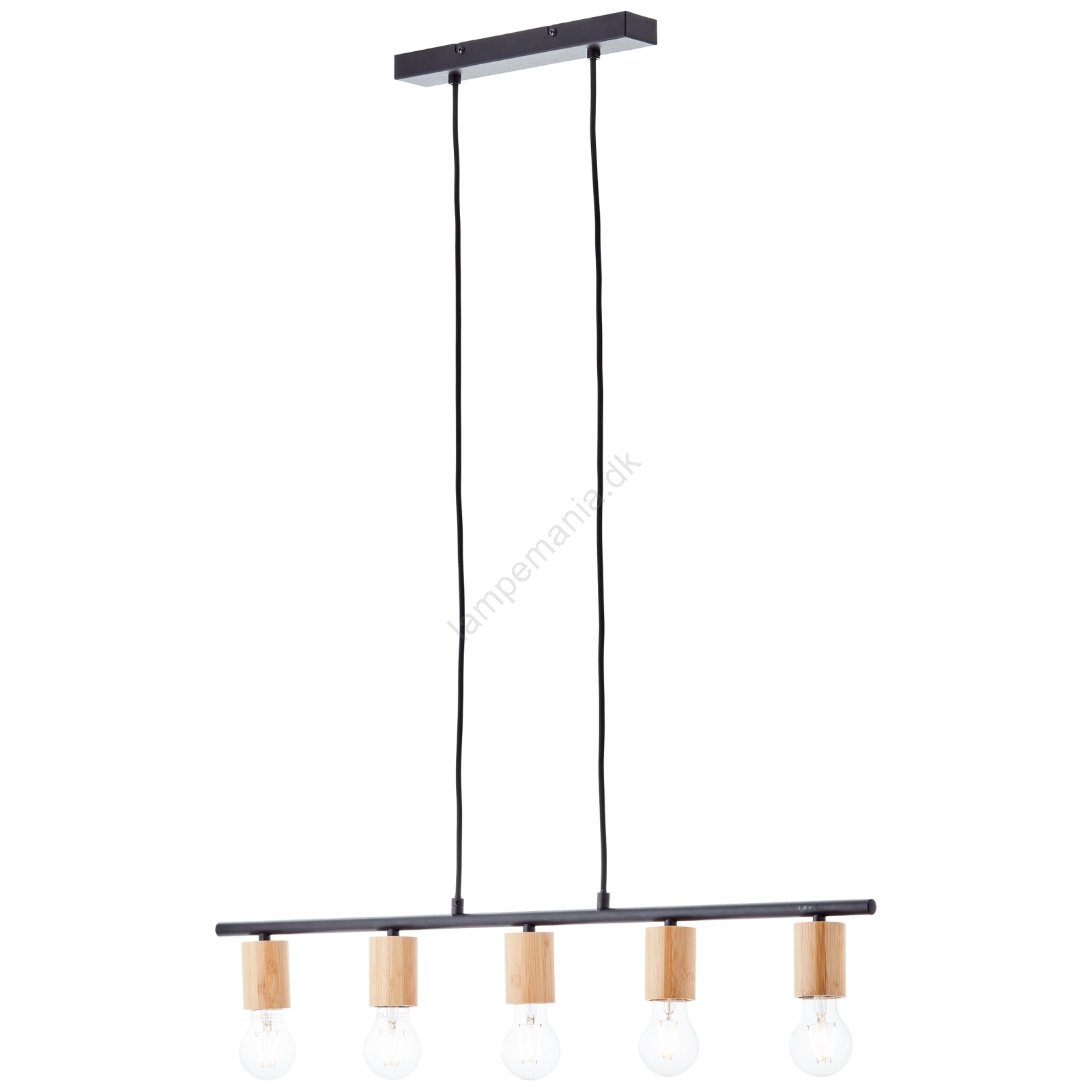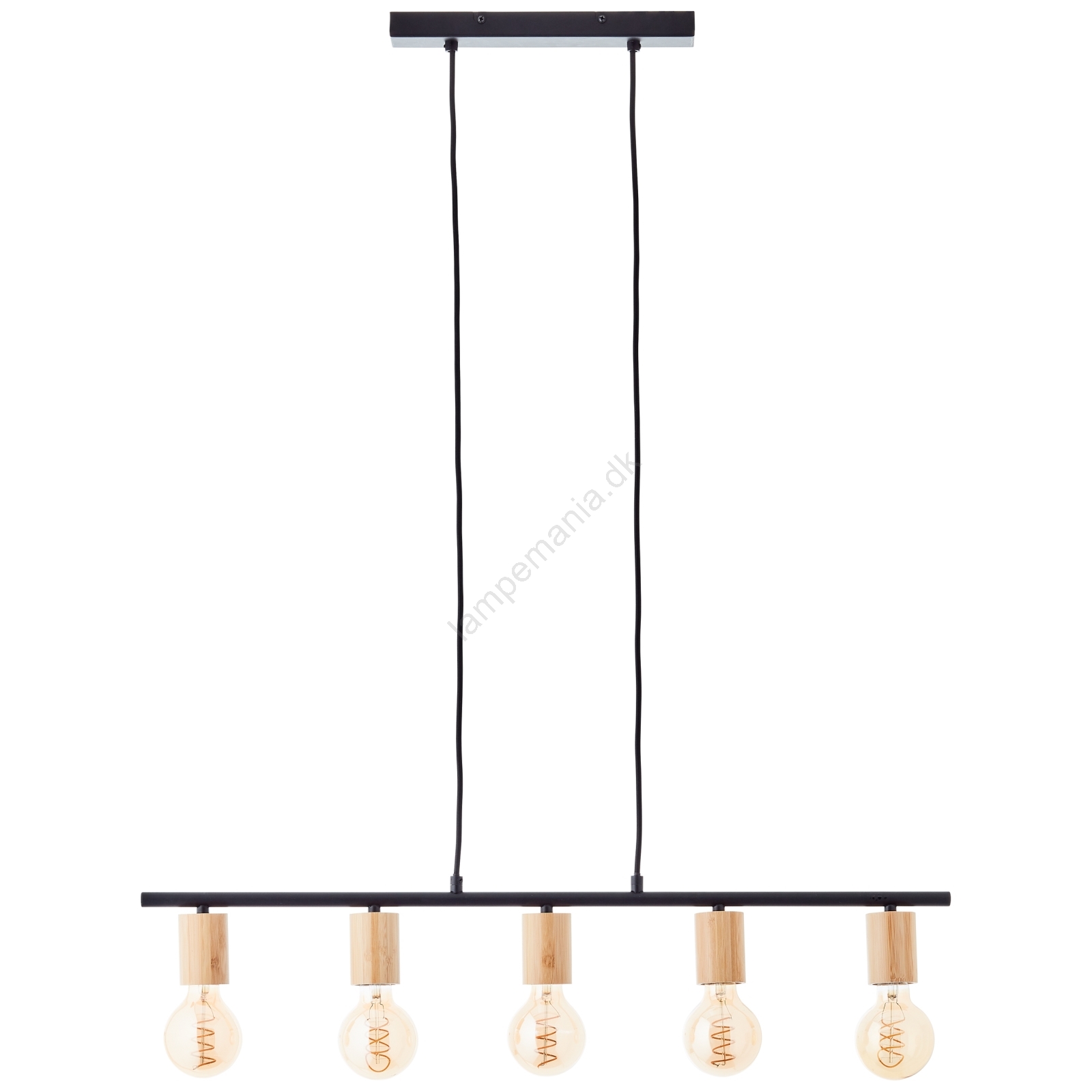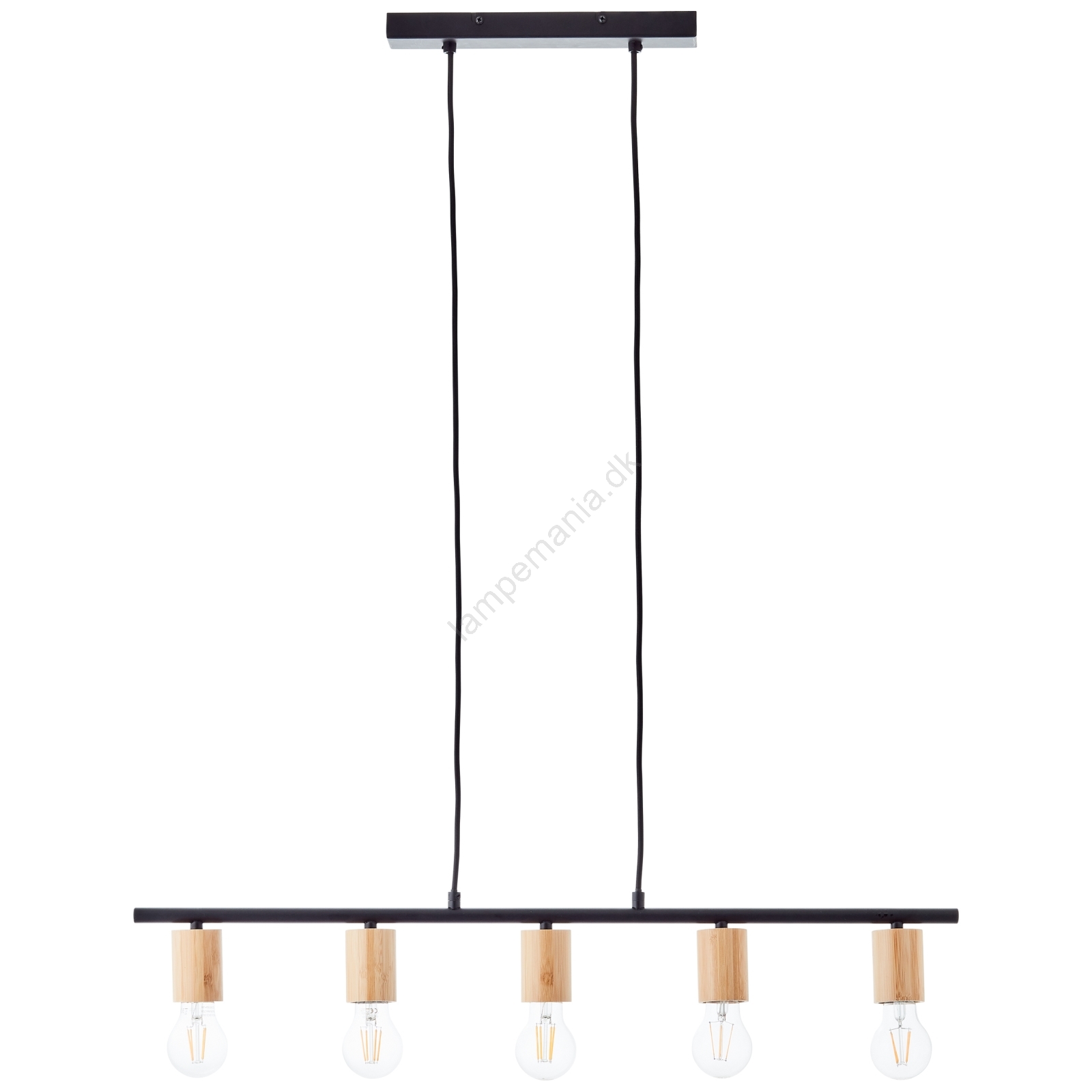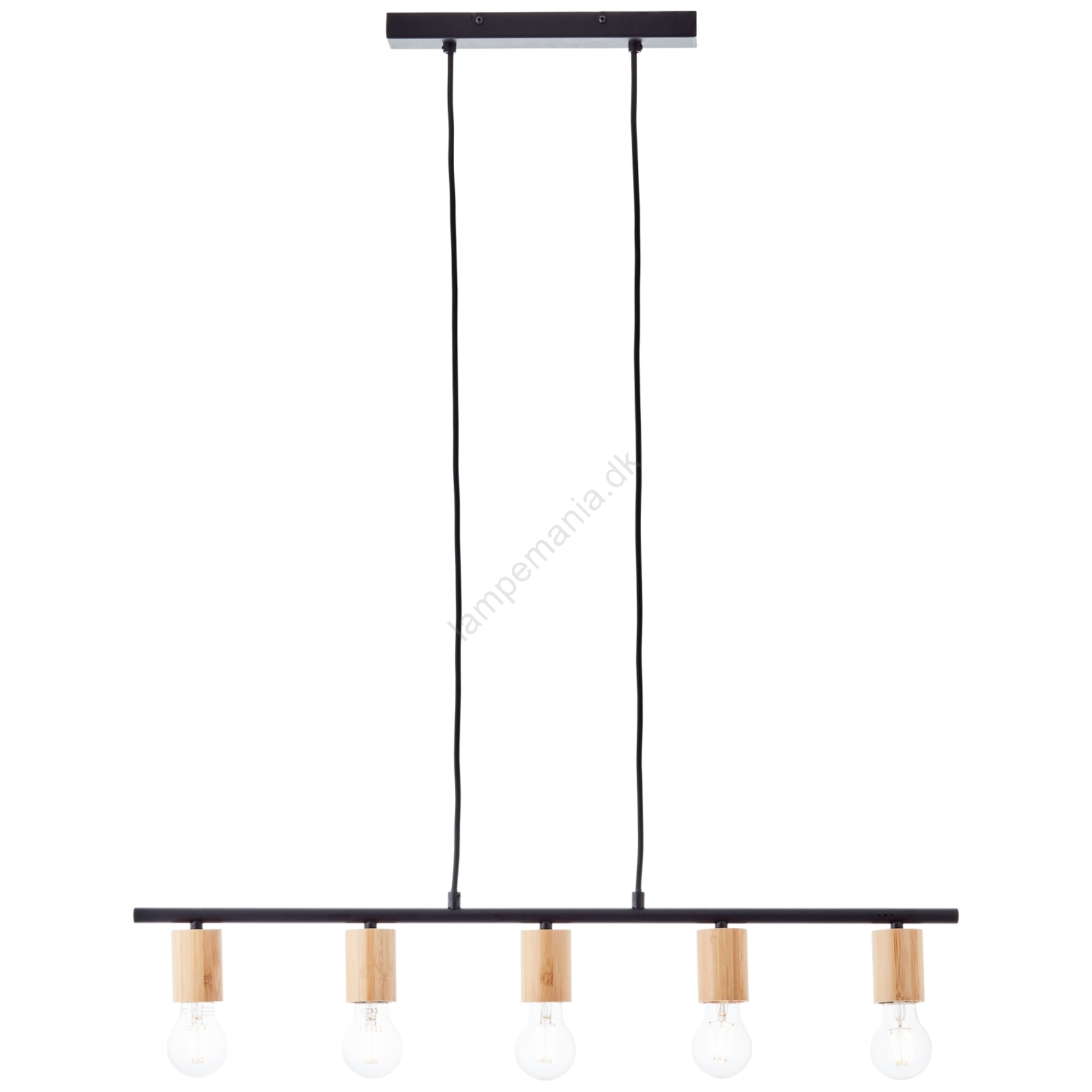 Brilliant - Pendel på kabel KERRY 5xE27/40W/230V sort/bambus er kendetegnet ved et flot og funktionelt design.  En lyspære med E27-fatning passer til denne lampe. Her kan du købe andre pærer til fordelagtige priser. Du får en interessant tilføjelse til dit hjem.