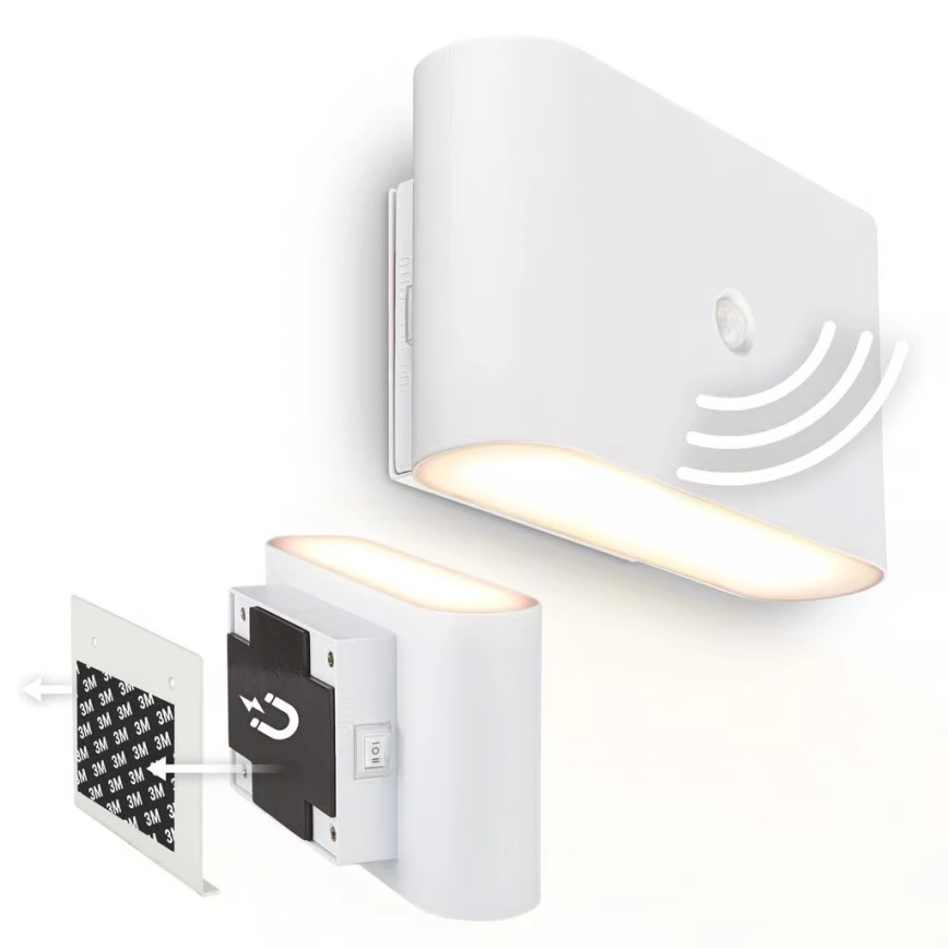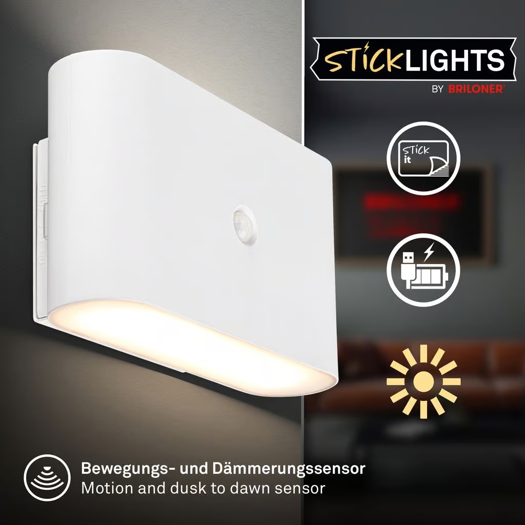 • Briloner 3878016 - Genopladelig LED-væglampe med bevægelses- og skumringssensor CHAT LED/3W/5V 2000 mAh hvid