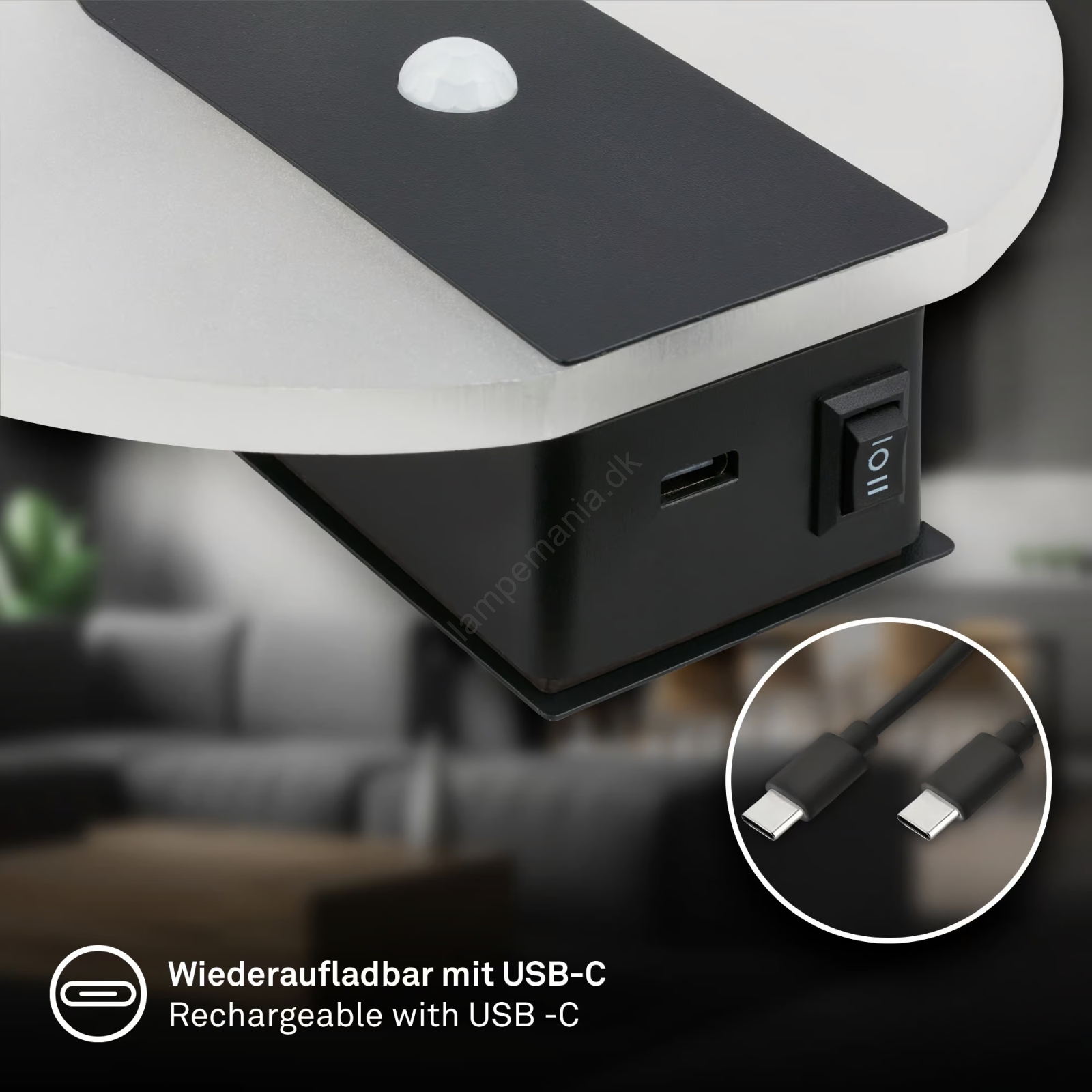• Briloner 3889015 - LED genopladelig væglampe med bevægelses- og skumringssensor TARO LED/2,5W/5V 1800 mAh sort