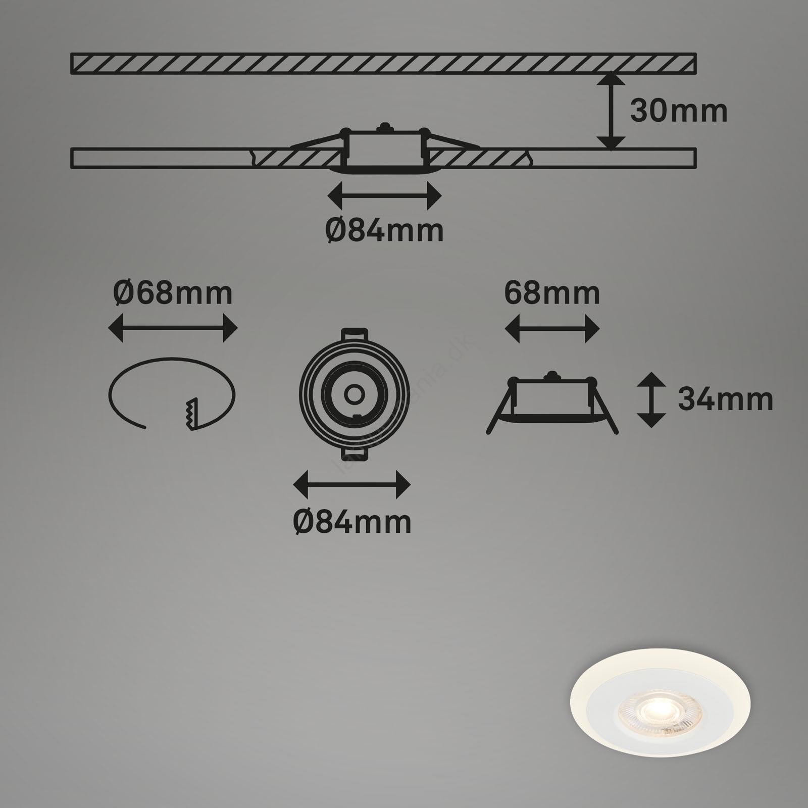• Briloner 7039034 - Sæt med 3 indbygningsspots til badeværelse, LED 5 W, 230 V, IP44, mat krom