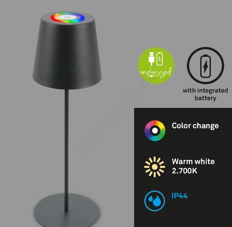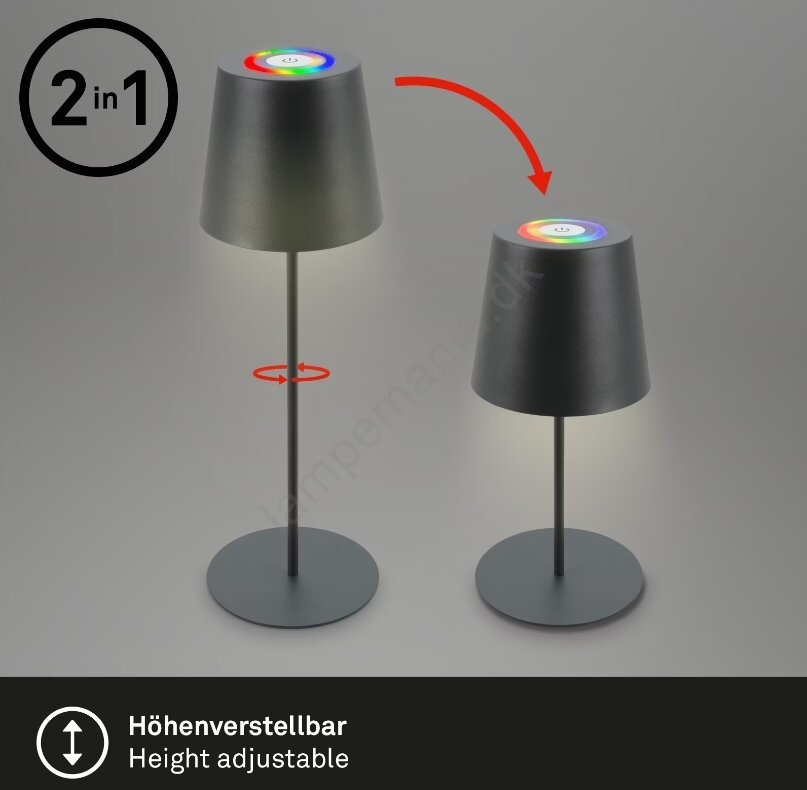 • Briloner 7507015 - LED RGB dæmpbar genopladelig udendørs bordlampe 2-i-1 LED/2,5W/5V IP44 1200 mAh antracit