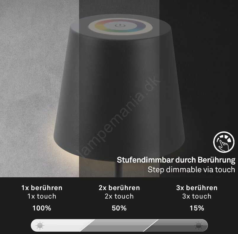 Briloner 7507015 - LED RGB dæmpbar genopladelig udendørs bordlampe 2-i-1 LED/2,5W/5V IP44 1200 mAh antracit