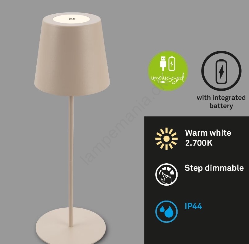 • Briloner 7508011 - LED-dæmpbar genopladelig udendørs bordlampe 2-i-1 LED/2,5 W/5 V IP44 1200 mAh beige