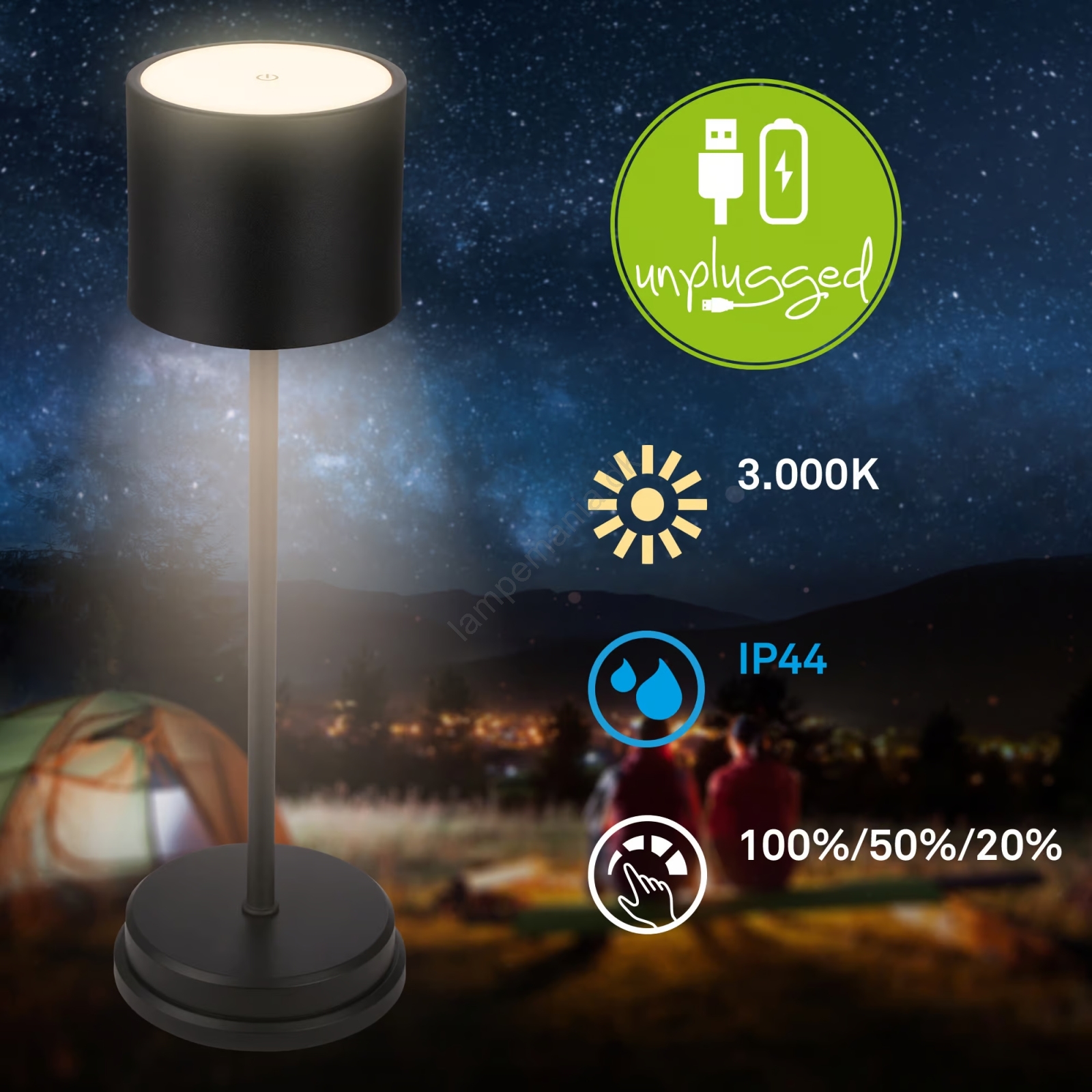 Briloner 7521015 - Dæmpbar LED udendørs genopladelig bordlampe SIGO LED/2,5W/5V IP44 2600 mAh sort