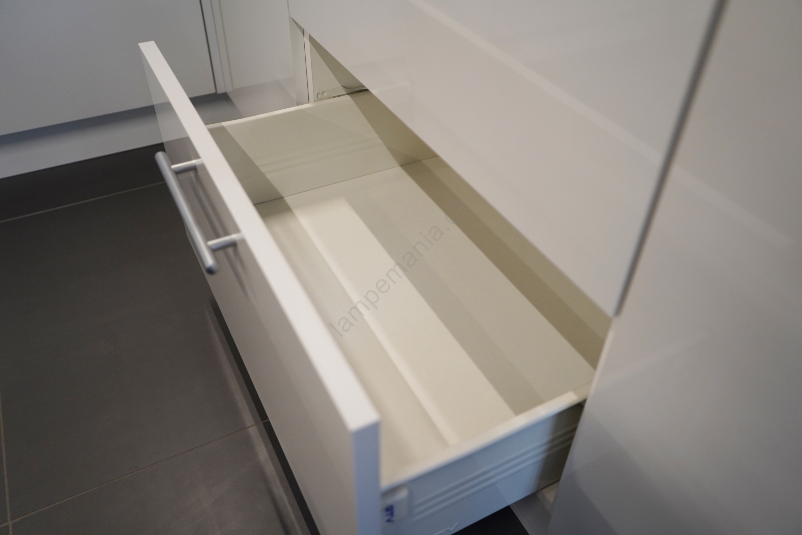 • Overskabe er forsynet med gasdæmpere, i skufferne er der indbyggede kvalitets indkapslede metalskinner.