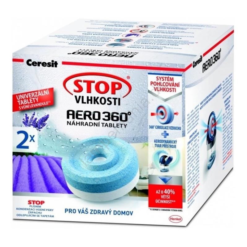 Ceresit - 2-i-1-tabletter til affugter AERO 360° 2 x 450 g Lavendelhave