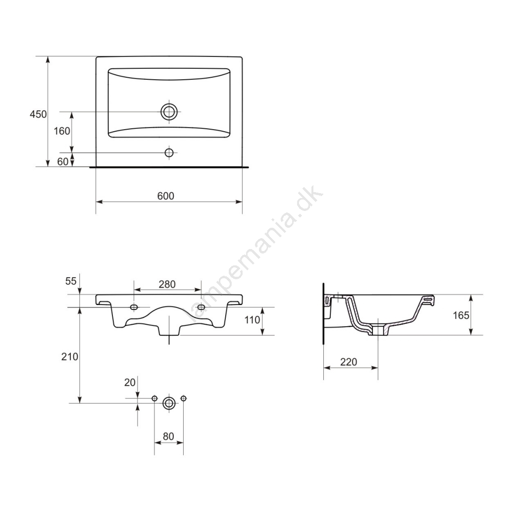 • Pakken indeholder håndvasken uden sifon og armatur.