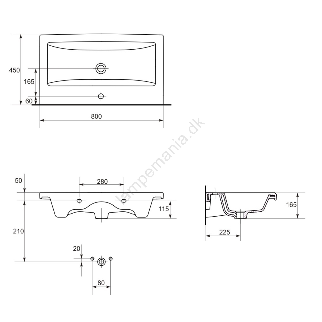 Cersanit K32-004-BOX - Nedfældet håndvask COMO 45x80 cm, keramik, højglans hvid