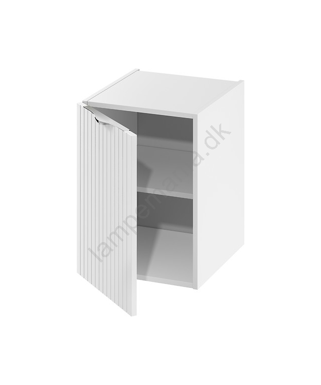 • Front, korpus og indvendige hylder er fremstillet i 16 mm spånplade med hvid lak.
