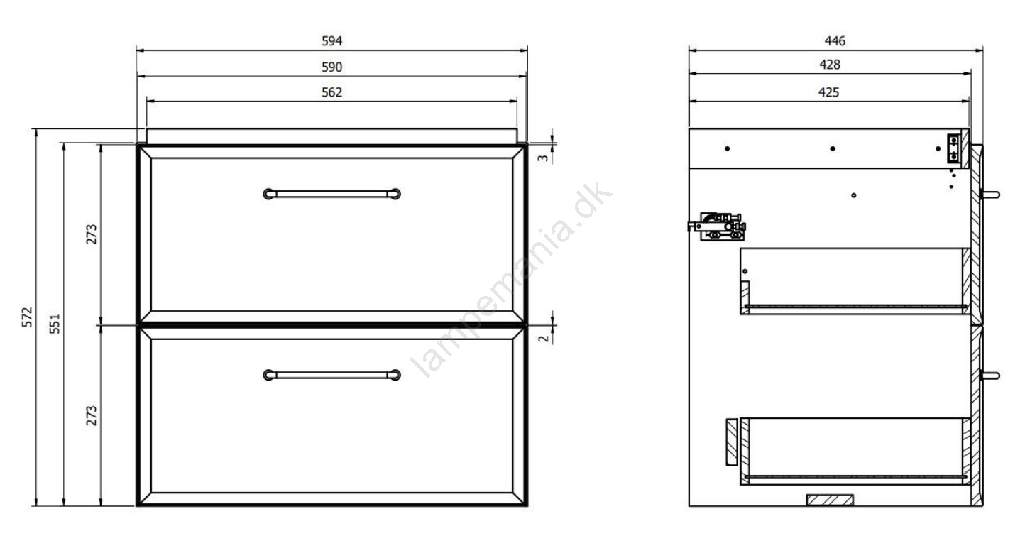 • Skabet har to skuffer med blød lukning - soft close.