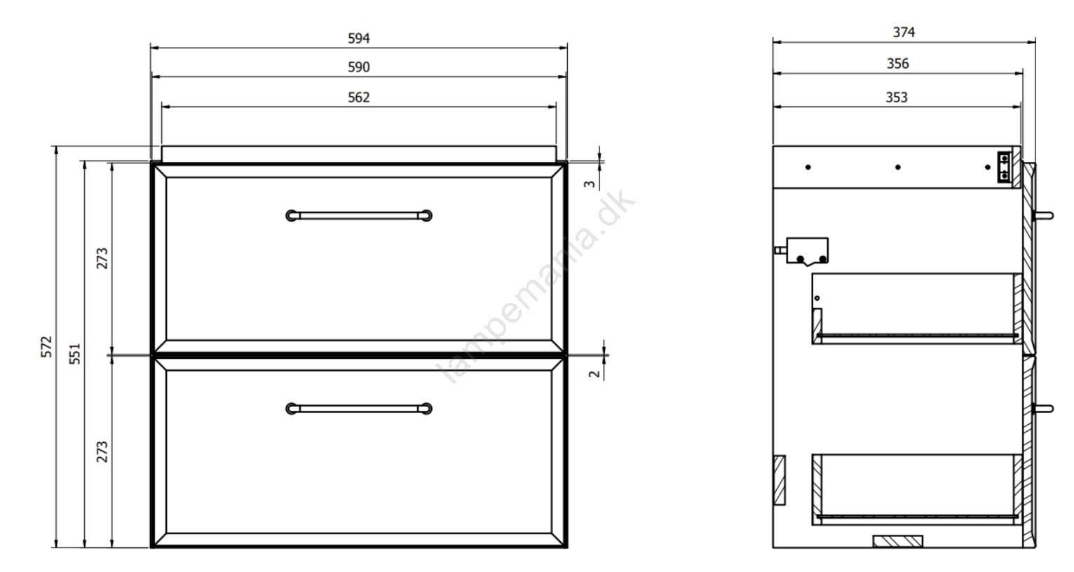 • Skabet har to rummelige skuffer med blød lukning - softlukning.