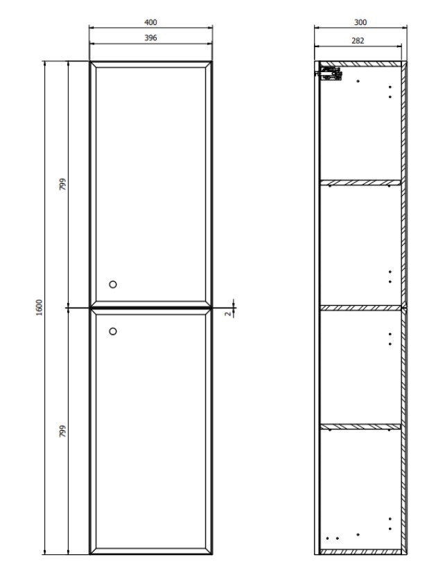 • Skabet passer perfekt til moderne badeværelser, hvor det giver et rent udtryk og praktisk udnyttelse af pladsen.