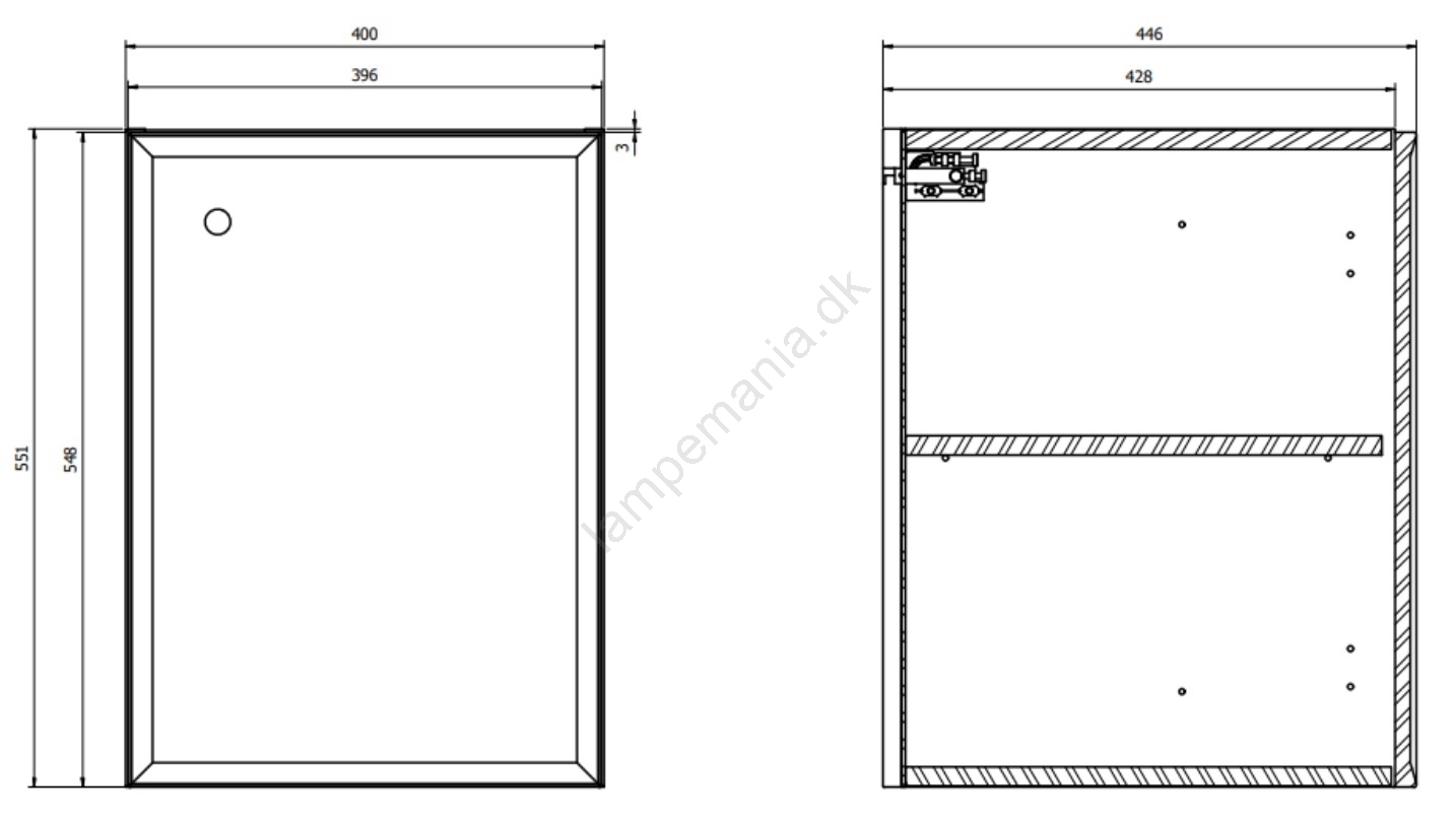 • Skabets front, korpus og indvendige hylde er fremstillet i 16 mm spånplade med mat sort lak.