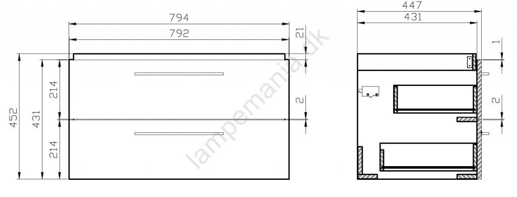 • Skabet har to rummelige skuffer med blød lukning og forkromede greb.