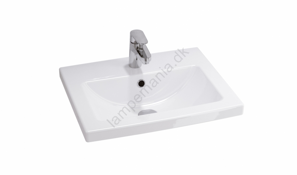 • Det keramiske håndvask har en klassisk rektangulær form med hul til armatur og overløb.
