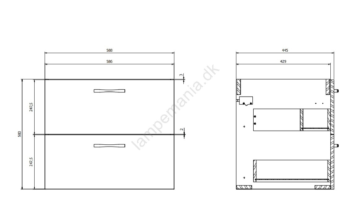 • Skabet har to rummelige skuffer med blød lukkefunktion.