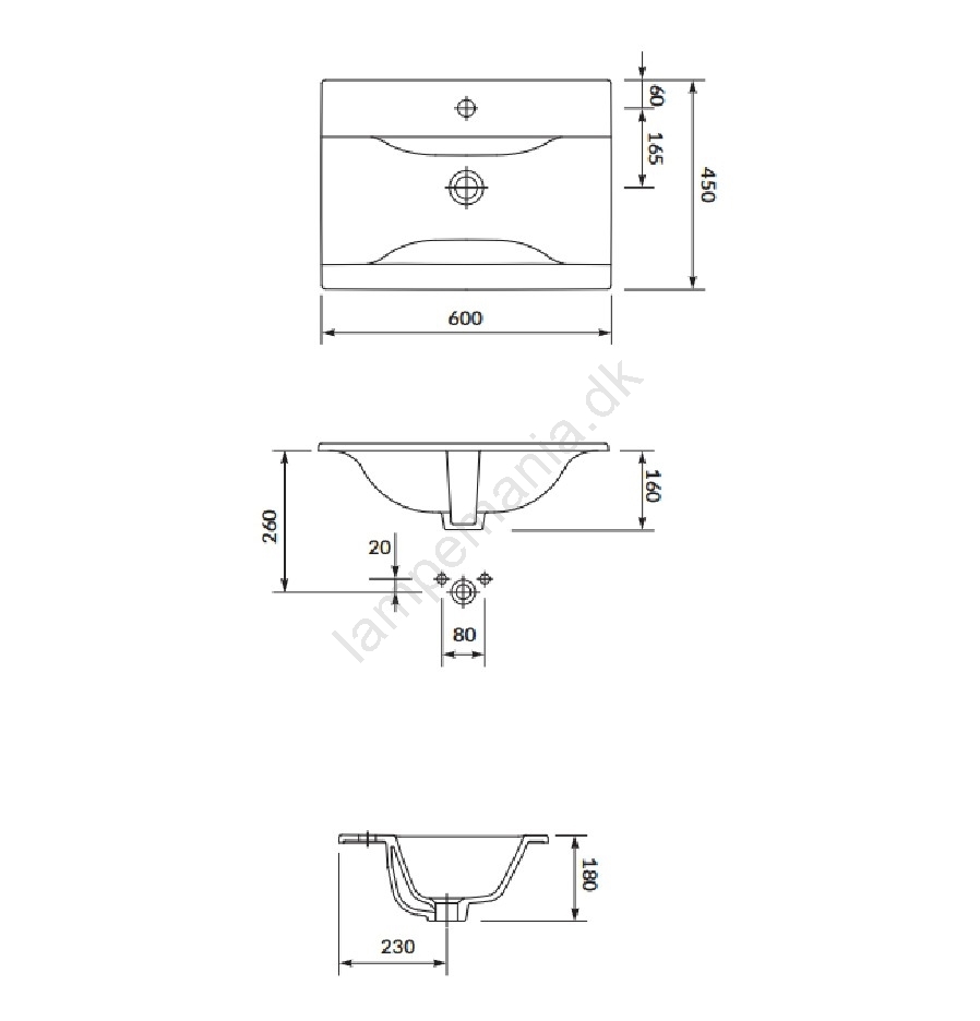 • Armatur til håndvask medfølger ikke.