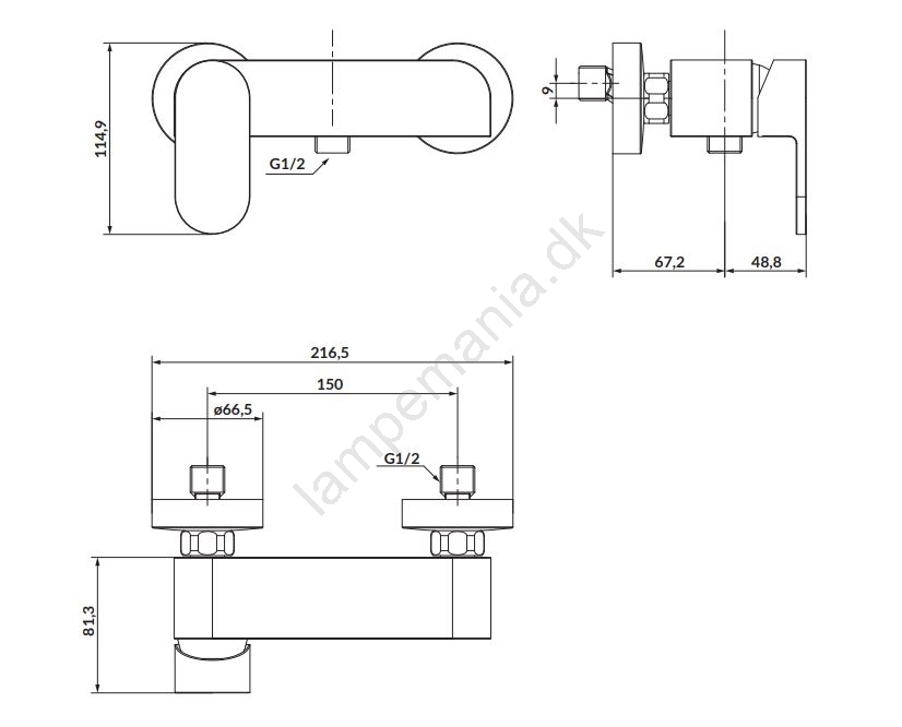 • Betjeningsmekanisme: keramisk patron på 35 mm.