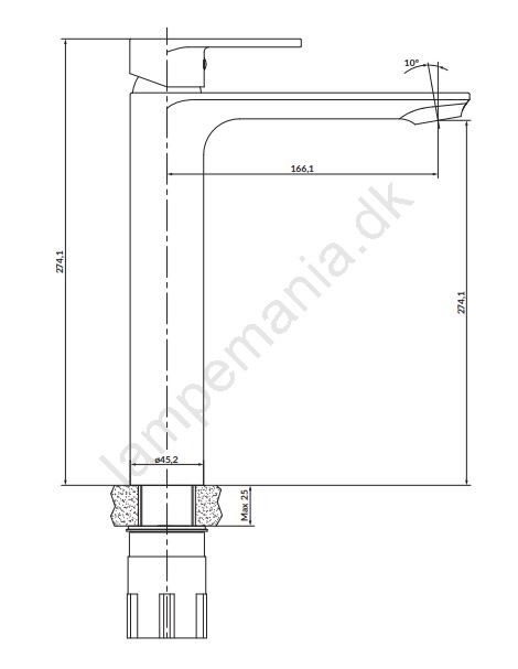 • Betjeningsmekanisme: keramisk patron på 35 mm.