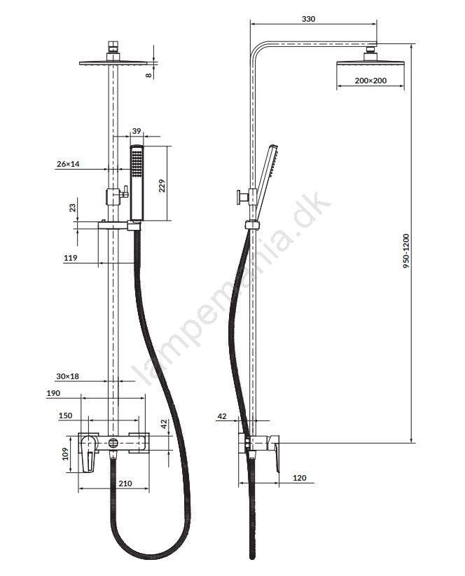 • Sættet er udstyret med en håndbruser i ABS-plast.