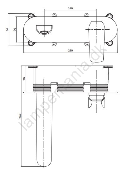 • Vægbatteri til håndvask til indbygning.