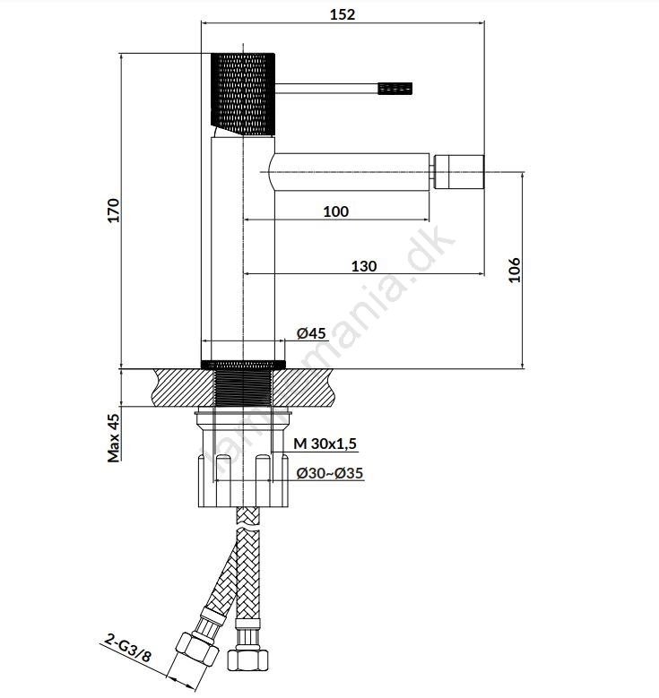 • Armaturet er også udstyret med fleksible Eco EPDM tilslutningsslanger på 60 cm.