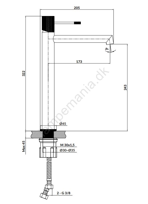 • Betjeningsmekanisme: keramisk patron på 35 mm.