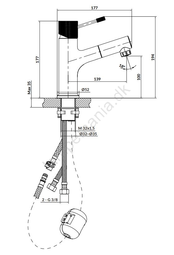 • Betjeningsmekanisme: keramisk patron på 35 mm.