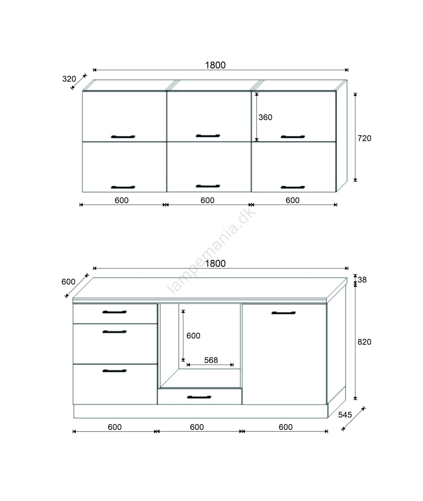 • Elektriske apparater, køkkenvask samt køkkenarmatur medfølger ikke.