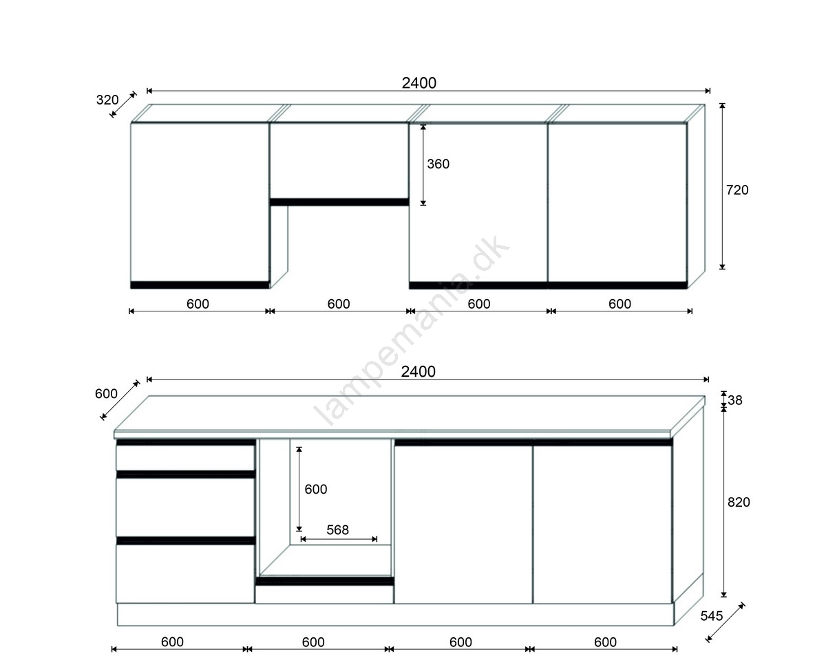 Køkkenenheder, Lige køkkenenheder, Møbler