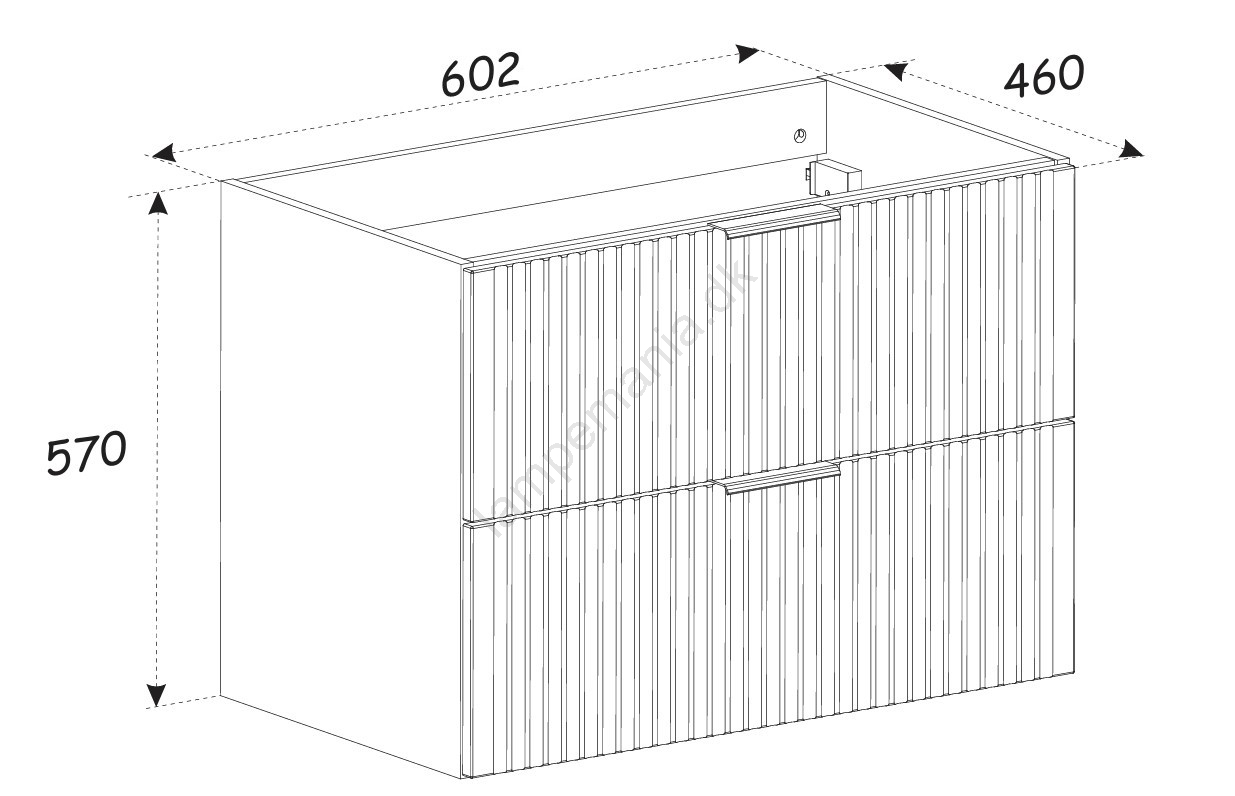 • Skabet leveres uden håndvask, armatur, sifon eller bundventil.