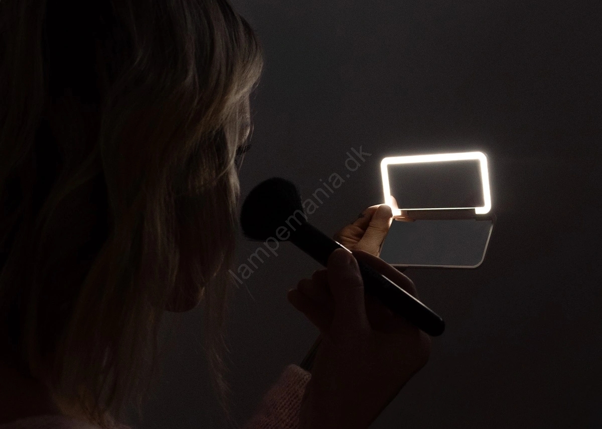 • Spejlet kan lyse i op til 3 timer på en enkelt opladning, og det kan nemt oplades med et USB-kabel fra en powerbank.