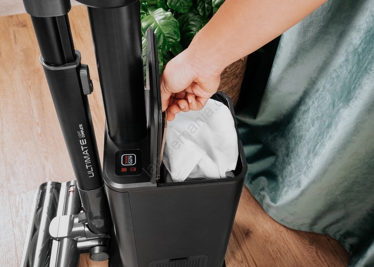 • Multifunktionel station tømmer hygiejnisk snavs ned i en 3,8 l pose uden at støvet blæses tilbage i luften.