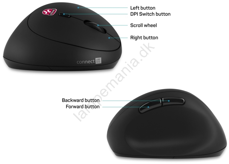 CONNECT IT CMO-2600-BK - Ergonomisk trådløs mus 800/1200/1600 DPI 1xAA sort