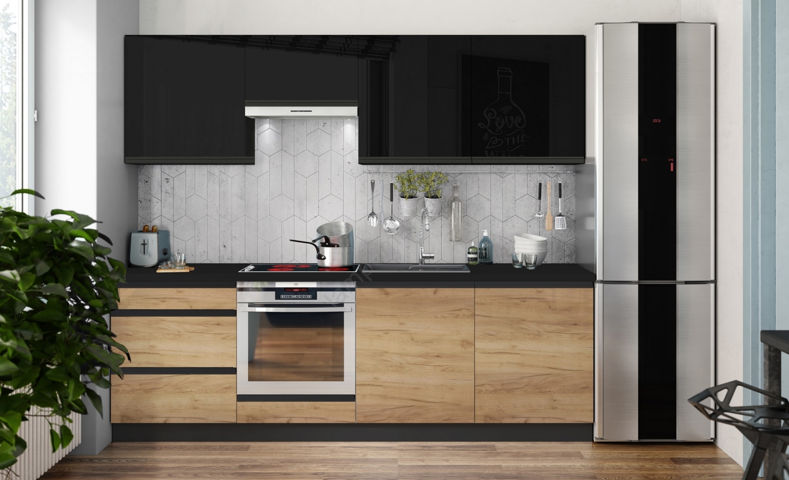 Køkkenmodul MARINA 240 cm craft-eg/højglans sort