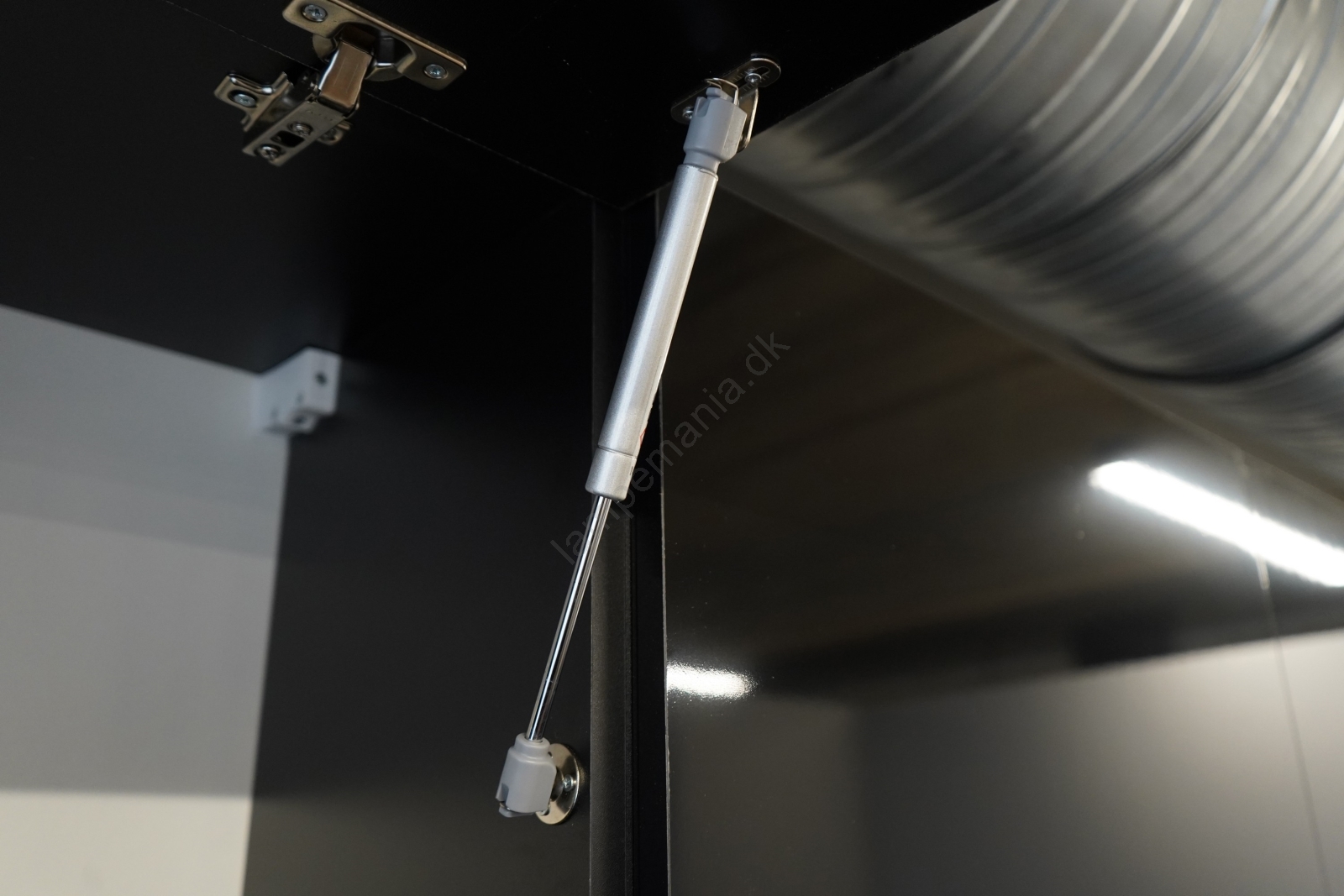 • Øverste skabe er udstyret med gasfjedre, i skufferne er der indbyggede kvalitetsindkapslede metalskinner.