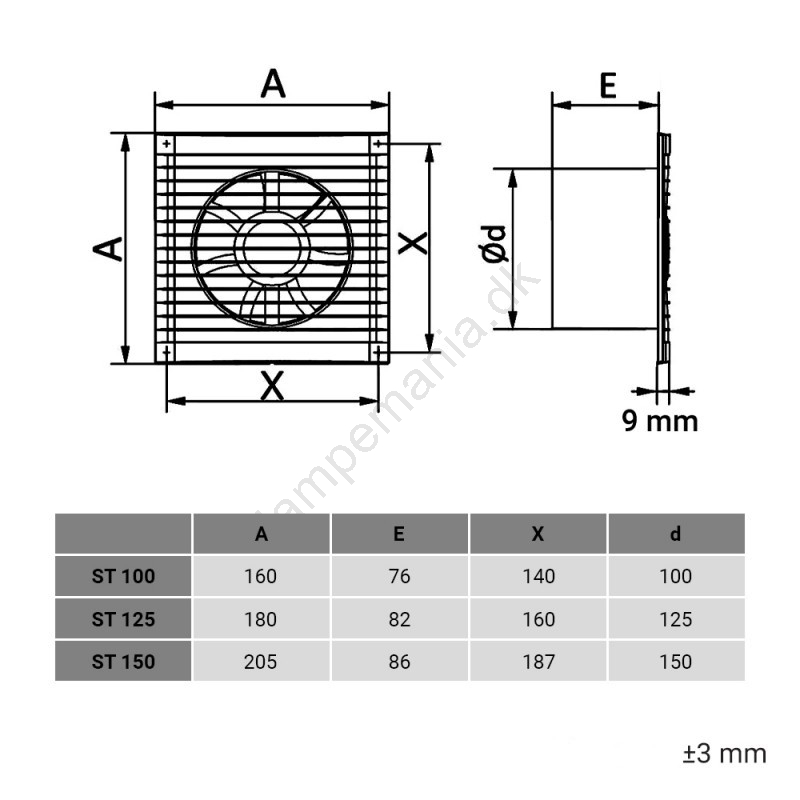 • Ventilatoren er kompatibel med aftræksrør med Ø 125 mm.