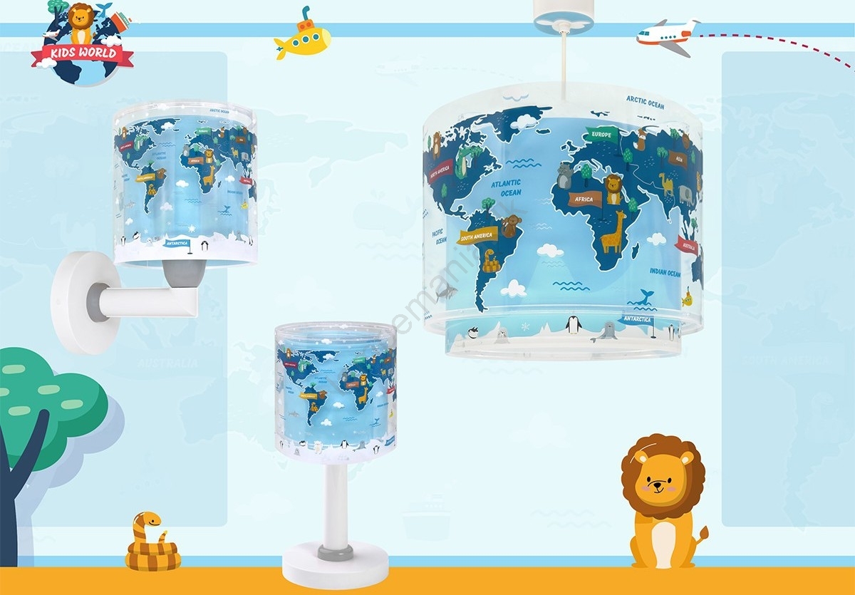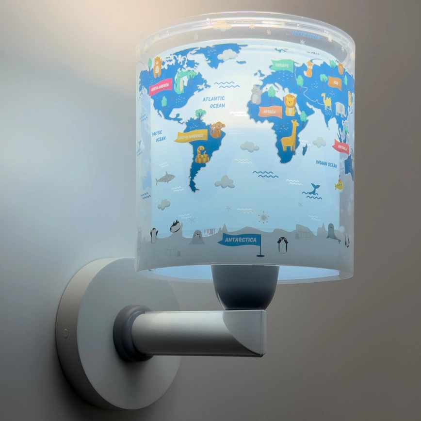 • Dalber 40679 - Børnevæglampe WORLD 1xE27/15W/230V blå
