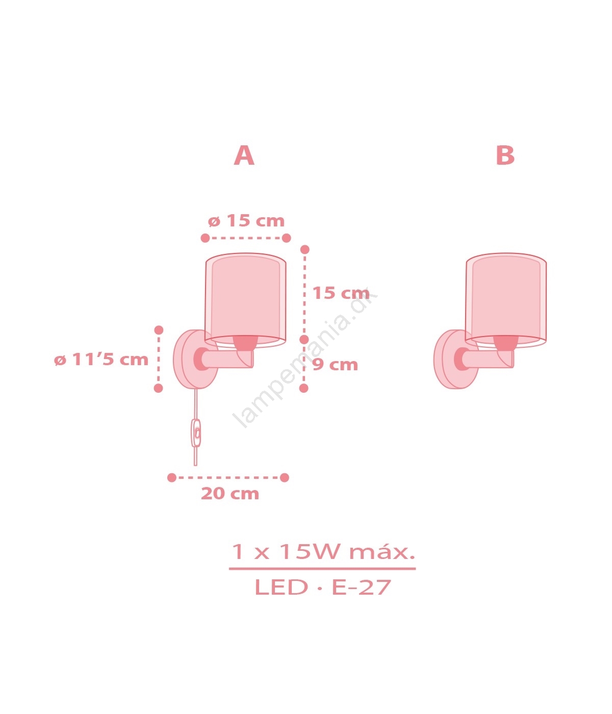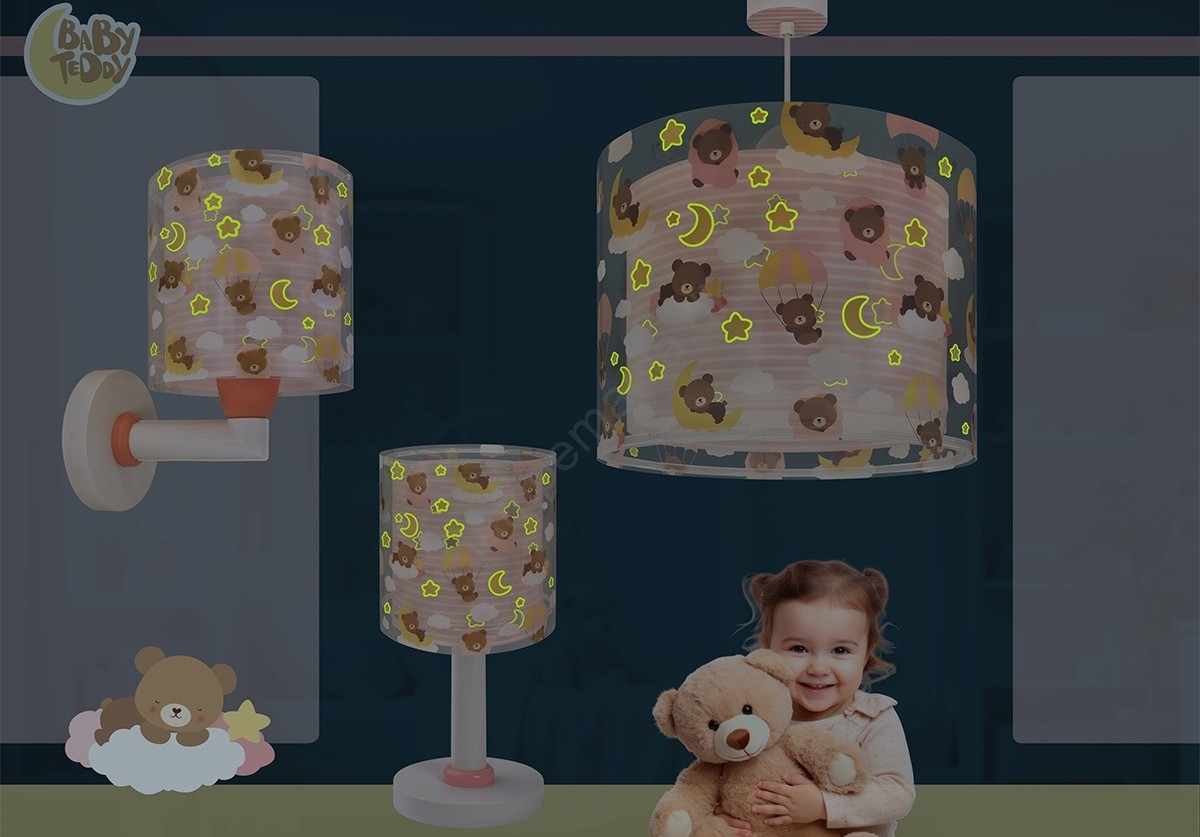 • Dalber 41579S - Børnevæglampe BABY TEDDY 1xE27/15W/230V, lyserød