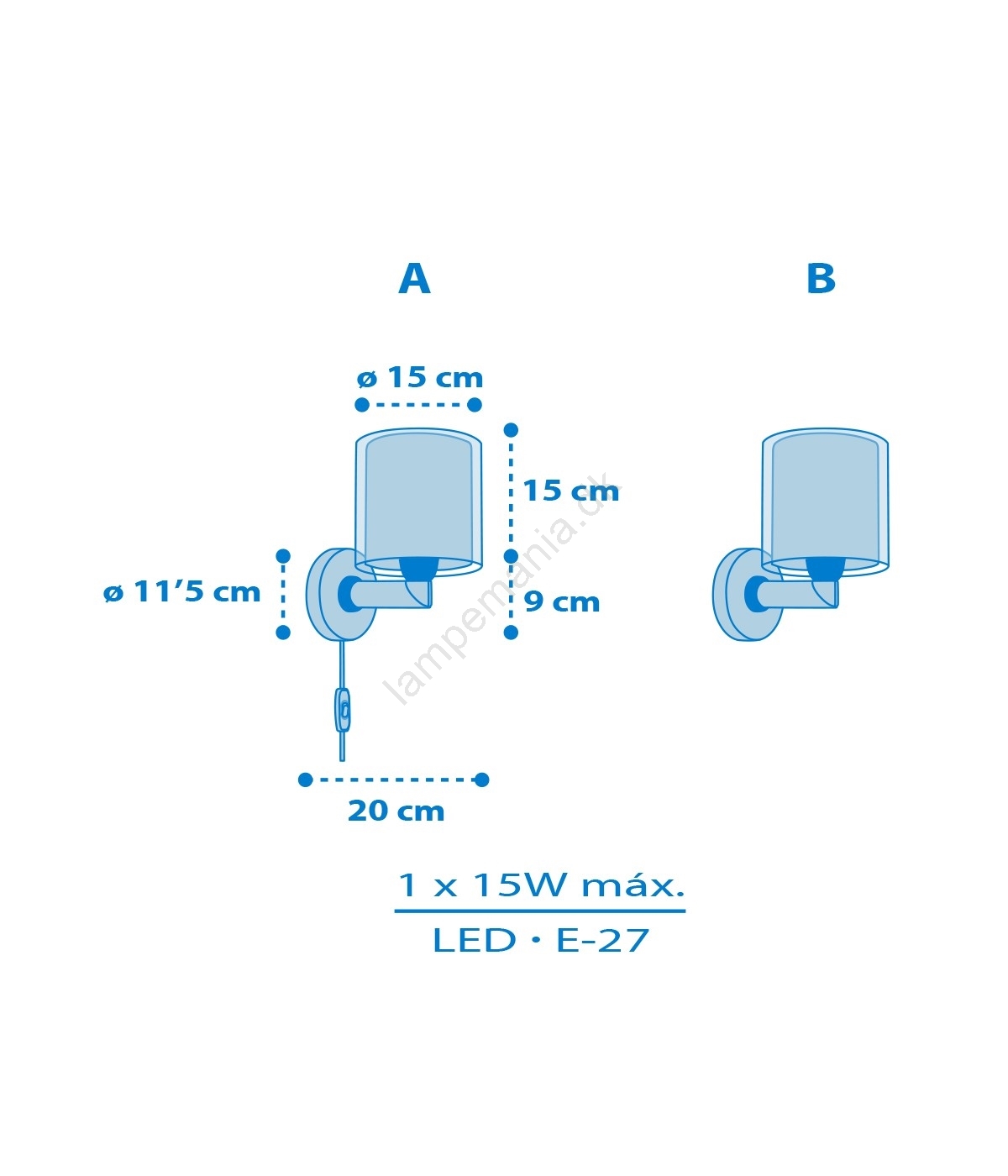 • Dalber 41579T - Børnevæglampe BABY TEDDY 1xE27/15W/230V blå