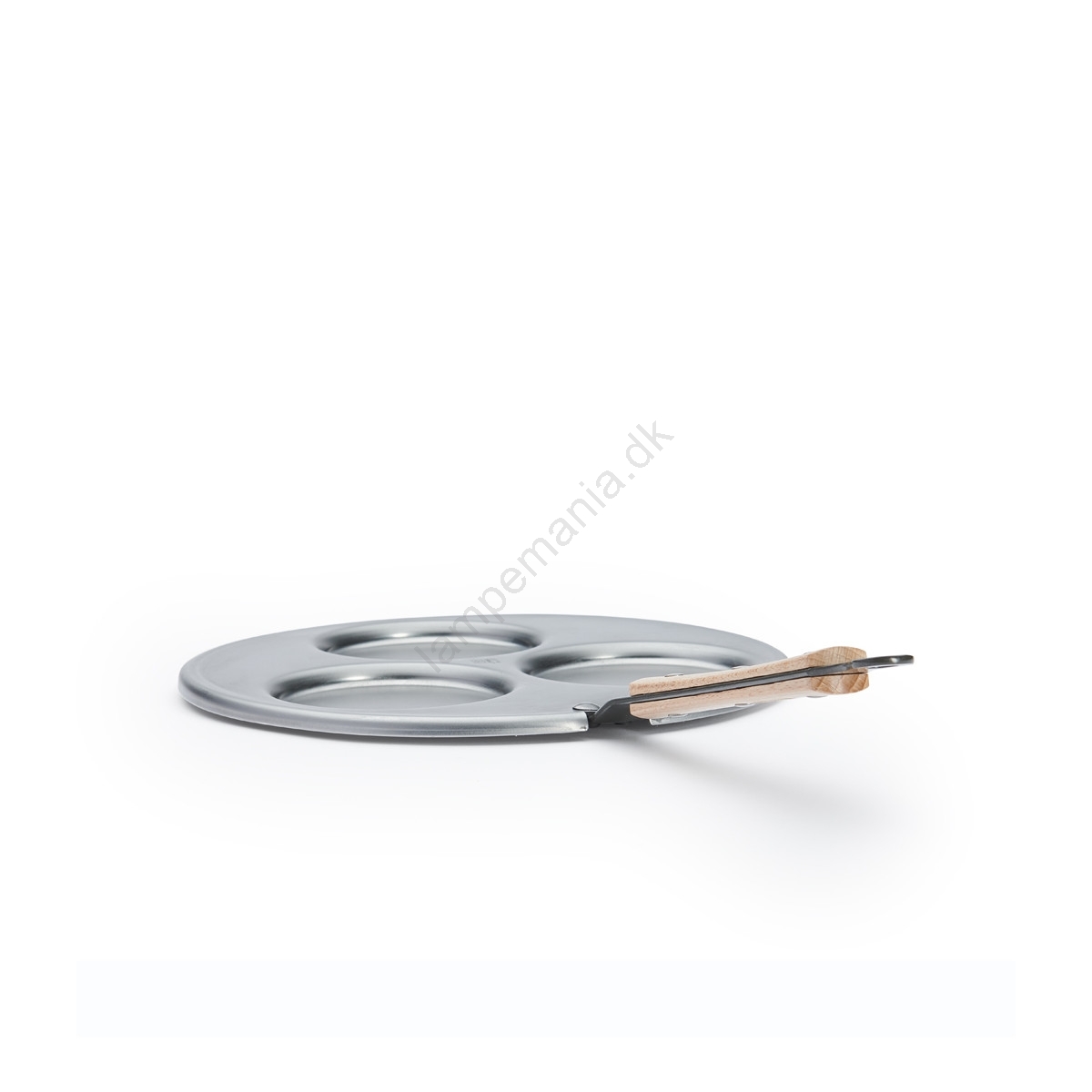 • Pande med tre forme (Ø 10 cm) til pandekager og æg.