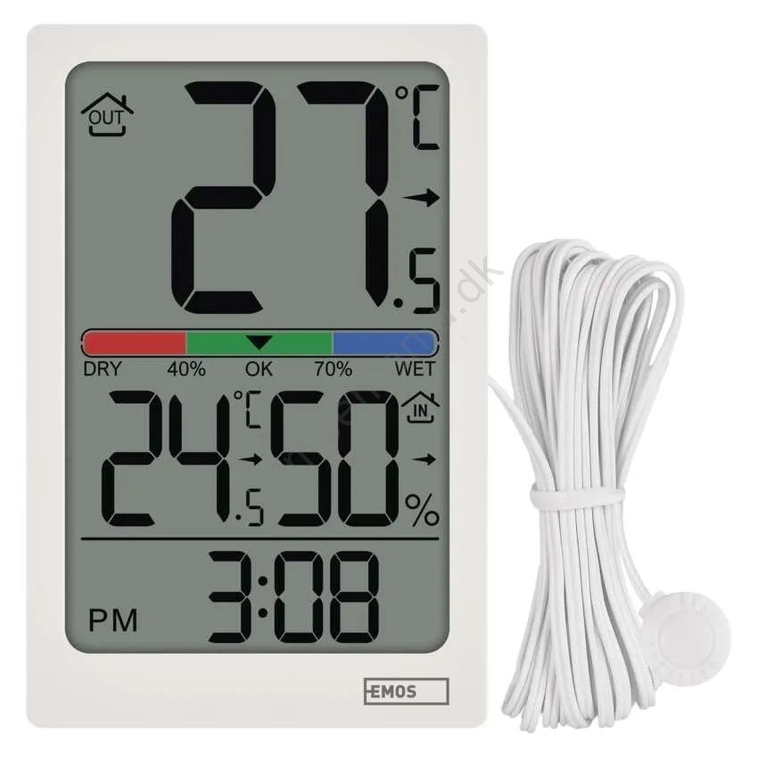 Digitalt termometer med hygrometer, 2x AAA, hvid