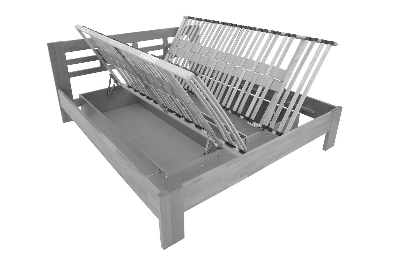 • Angela Dobbelt seng i massivtræ med opbevaring 180x200 cm bøgetræ