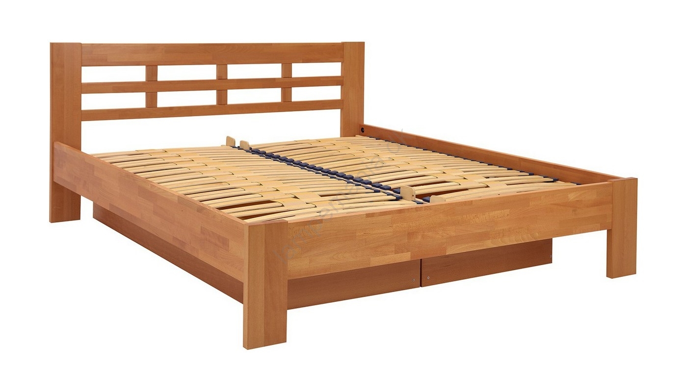 • Angela Dobbelt seng i massivtræ med opbevaring 180x200 cm bøgetræ
